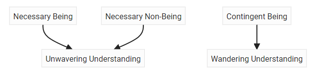 Furthermore, why does Parmenides bother to present a fundamentally flawed cosmology—the path of the mortals—if his reasoning shows that such things cannot possibly exist? If we recognize three paths instead of two, we solve this apparent mystery. So the goddess is not suggesting, as many interpreters think, that nothing exists in the way mortals believe, but that things that exist only contingently cannot lead to certain understanding.