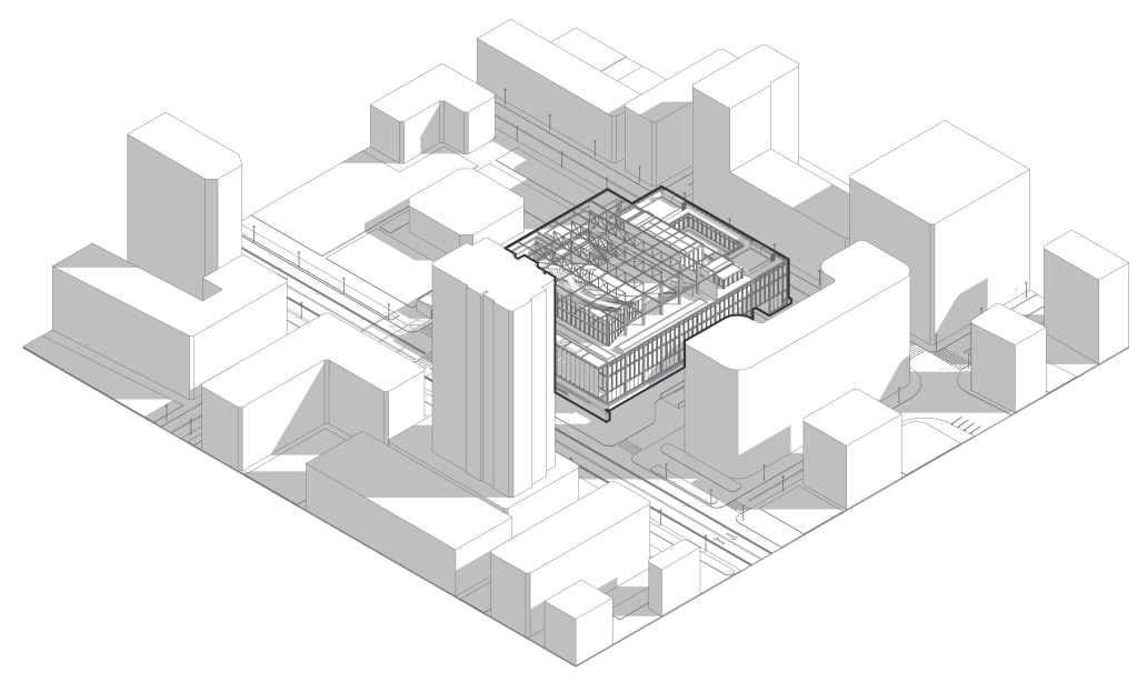 This building aims to fulfill the parking requirements of the center of Tbilisi. It stands South of Liberty Square, where parking issues are especially prominent. The building has parking spaces for around 200 vehicles spread across three stories and public areas on the roof.