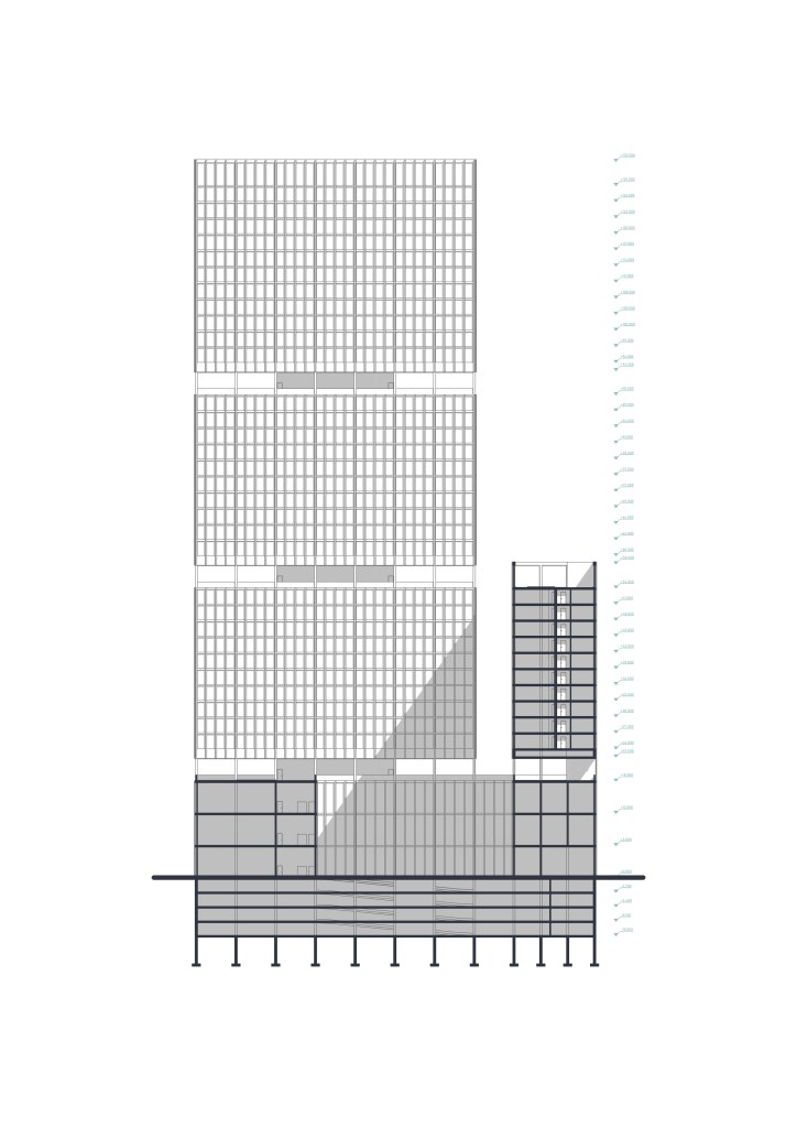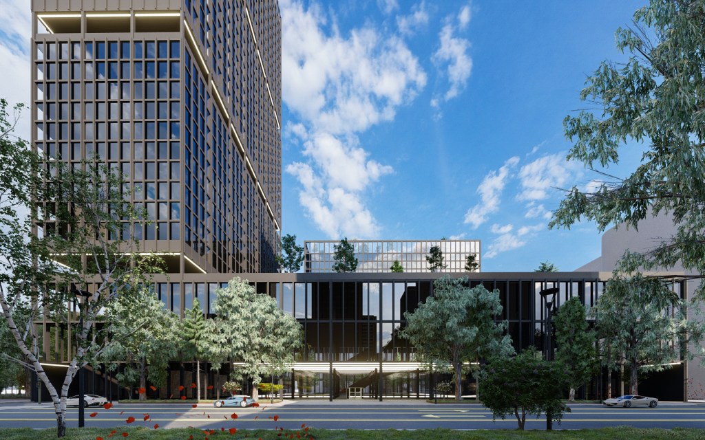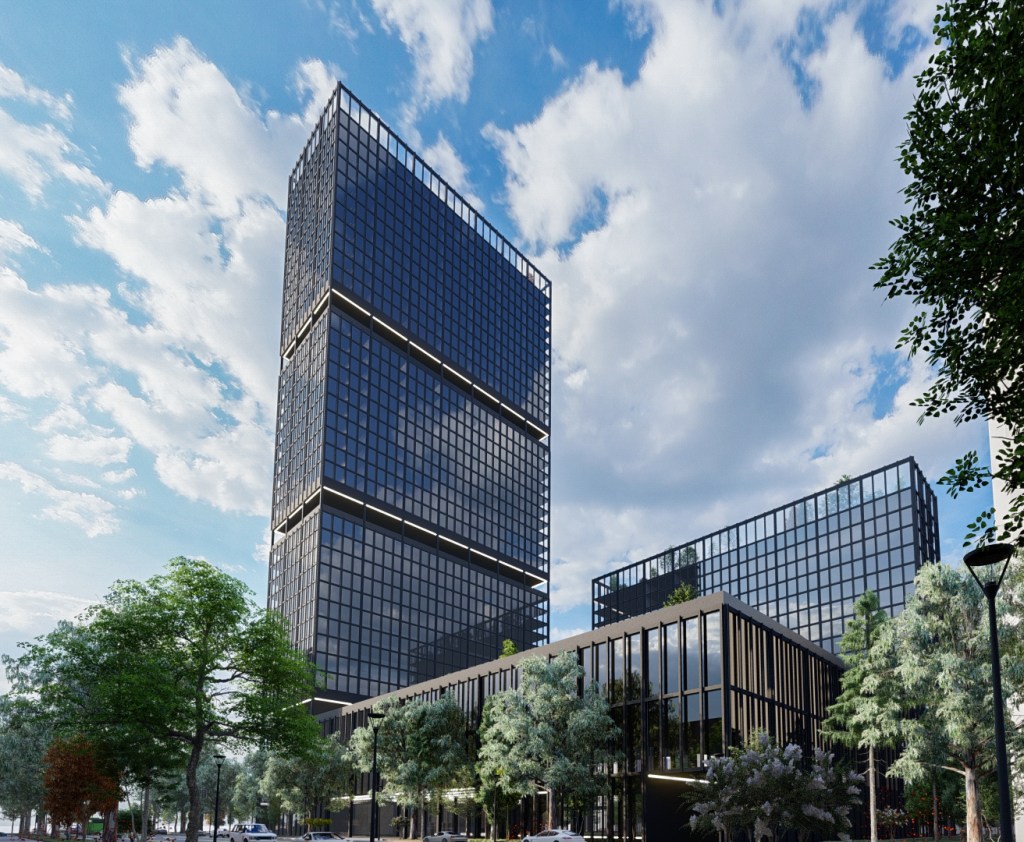 The skyscraper complex is located on Ilia Chavchavadze avenue, next to the Embassy of the Czech Republic in Tbilisi. The project includes commercial spaces, office spaces, a hotel, an apartment building, communal spaces for recreation, a central courtyard, two roof gardens, and four floors of underground parking.