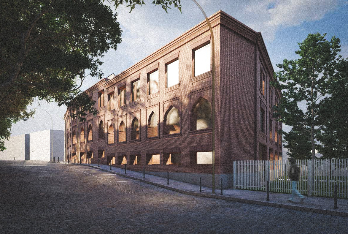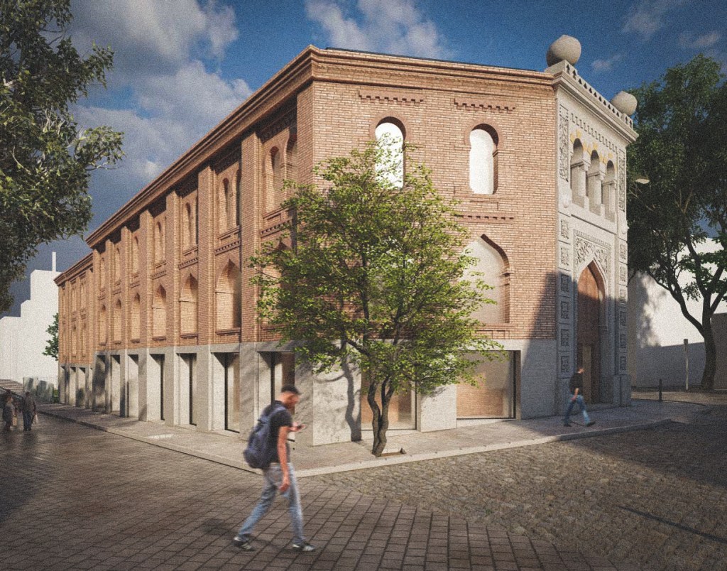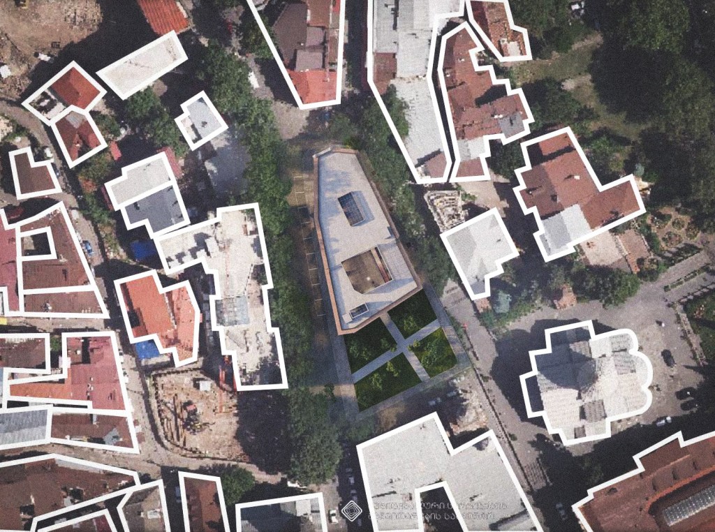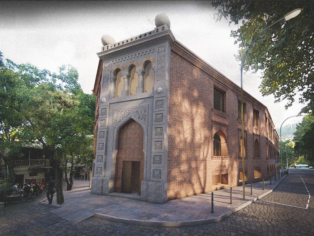 The proposal is a reconstruction of an abandoned caravansary in Tbilisi, next to the Sioni Cathedral, between Kote Afkhazi St and Sioni St. The design leaves the old parts of the building as they are. The interventions, made with modern materials, are distinct in style from the preexisting construction.